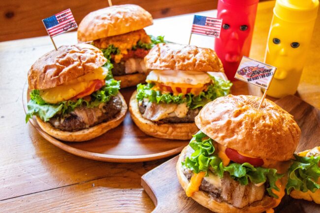 【Cafe Club BIGONE】のハンバーガーとの出会いは2021年のバイクイベントでした。コロナの非常事態宣言明けすぐのためイベントで飲食の提供がまだ厳しいなか、千葉県からから山形・蔵王までキッチンカーで駆けつけてバイカーたちの胃袋をを満たしていただきました。私はその時は食べられなかったのですが、ハンバーガー好きとしてはあきらめられず、東京に戻ってからすぐに食べにいきました!期待通りの美味しさでした。